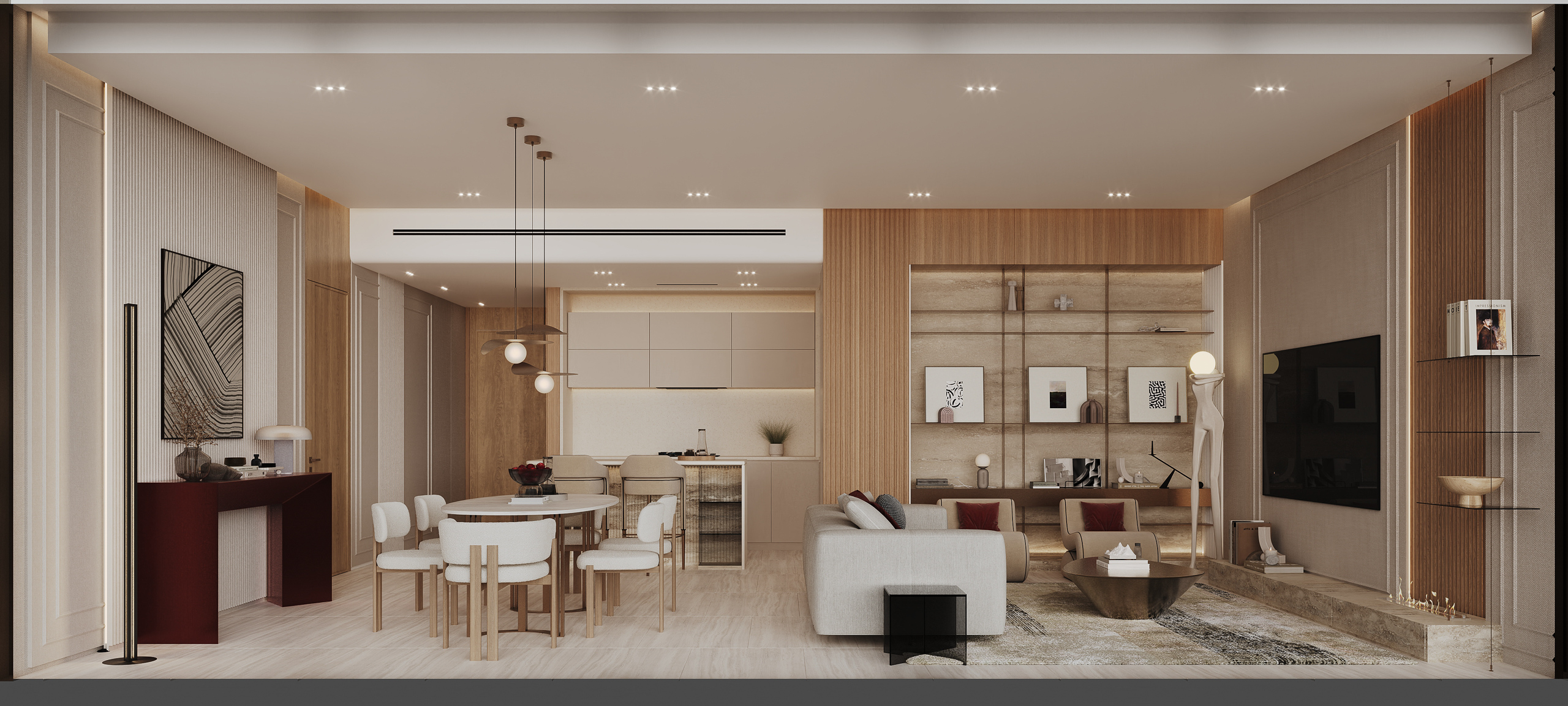 Interiors showcase polished marble floors, rich color schemes, and carefully selected materials. Bespoke lighting and detailed finishes create refined living spaces.